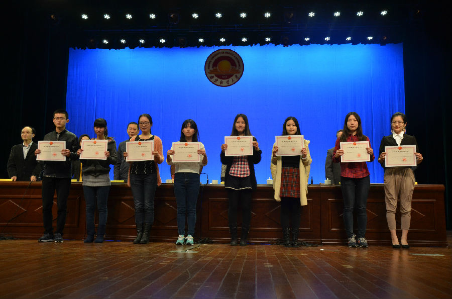 201542日晚1830分,我校2014年度国家奖学金颁奖典礼暨首场巡讲活动在大活礼堂隆重举行。我院2011级张娟(女)、2012级马秋方(女)、2013级尤晶晶三名同学凭借自身努与过人实力在国家奖学金评选中脱颖而出,荣获2014年度国家奖学金。
