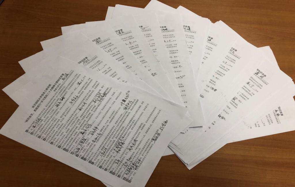 为认真贯彻落实党的二十大精神,检验学习教育成果,营造“比学赶帮”学习氛围,11月18日下午,信息工程学院在全院教工中举办了“踔厉奋发,勇毅前行”学习党的二十大精神主题知识竞赛。知识竞赛共有50道填空题,包含了党的二十大报告的主要内涵和思想精髓。教工们通过现场答题,对二十大报告中未来五年乃至更长时期党和国家事业发展的目标任务和大政方针有了深入的理解,对党的二十大精神有了更加全面的认识和把握。大家纷纷表示,要以党的二十大精神为指引,坚持学深悟透,切实将学习成果转化为推进工作的强大动力。