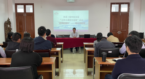 根据学校2023年秋季学期“名师名课示范观摩”的整体安排,信息工程学院于11月22日下午在德业楼406会议室开展了主题为“教师的情怀”的名师名课示范观摩活动,主讲人为我院资深教授韩忠愿教授,本次活动由教学副院长李树青主持,学院全体教师参加,刘凌波老师做了点评,王有权和吕冬晴两位青年教师作感悟发言。
