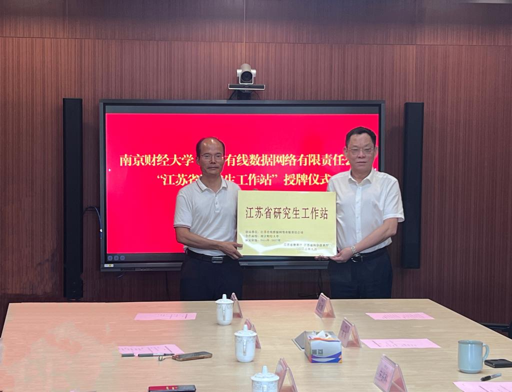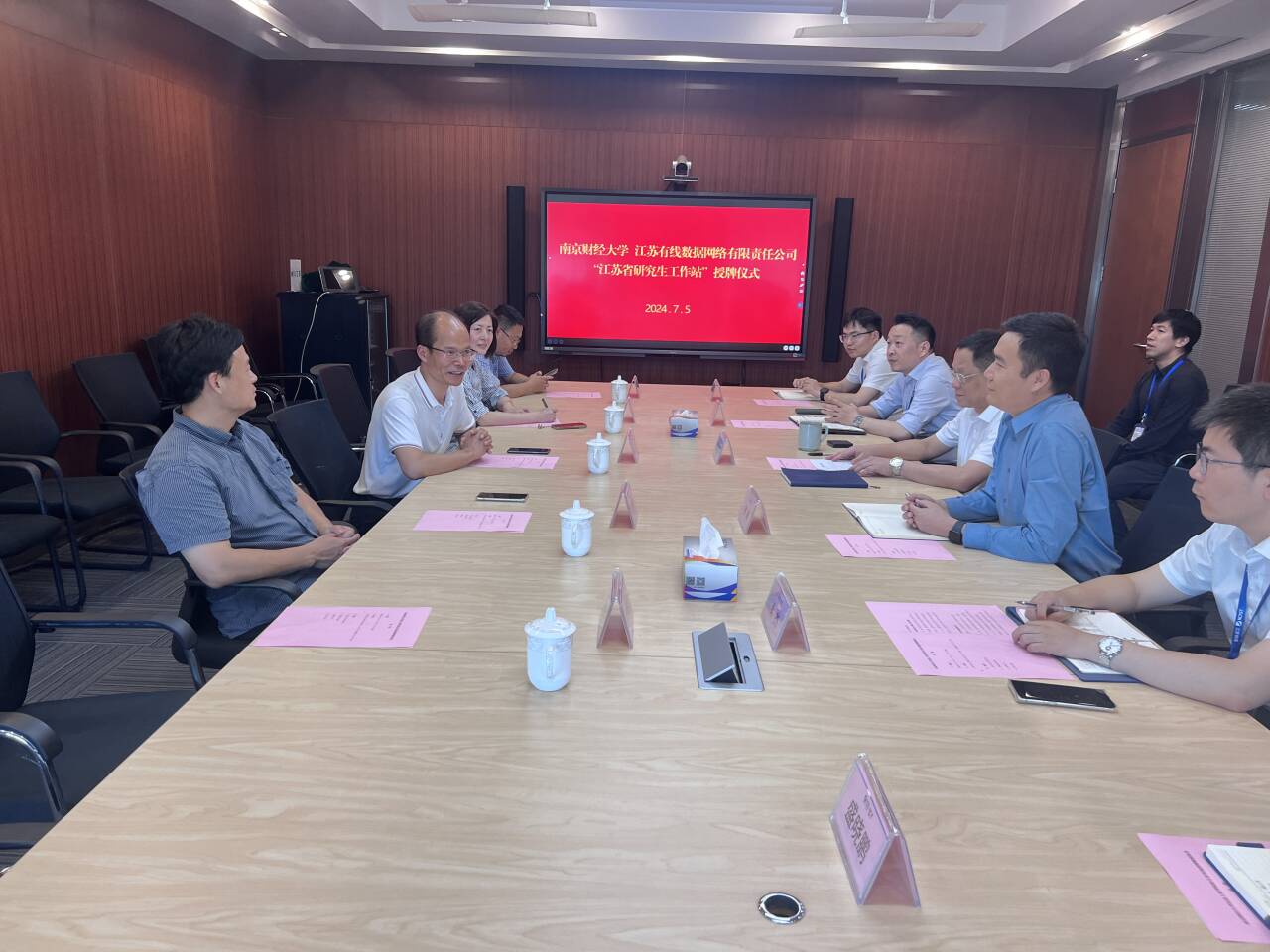 7 月 5 日,信息工程学院院长黄健、副院长马福民、李树青和院长助理毛波等一行前往江苏有线数据网络有限责任公司(以下简称“江苏有线数据公司”)为双方获批共建的“江苏省研究生工作站”授牌。江苏有线数据公司党委书记、总经理宋晶科,党委委员、副总经理林峰等领导出席。授牌仪式取得圆满成功。