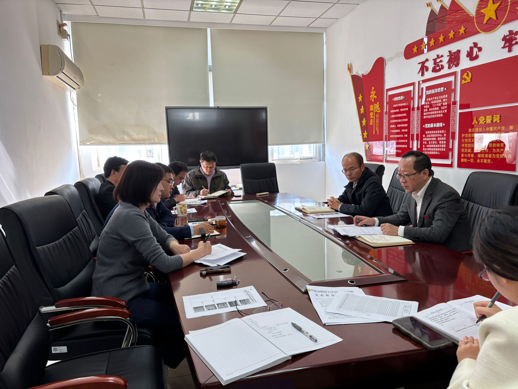 10月30日,我院在德业楼412会议室召开党委理论学习中心组学习会议,全体党委理论学习中心组成员参加学习会。主要围绕深入学习贯彻习近平法治思想,深刻领会习近平新时代中国特色社会主义思想是全面推进强国建设、民族复兴伟业的行动指南的重要意义,深入学习领会习近平总书记关于推动金融高质量发展、建设金融强国的重要论述三个主题开展学习。会议由院党委书记张阳军主持。