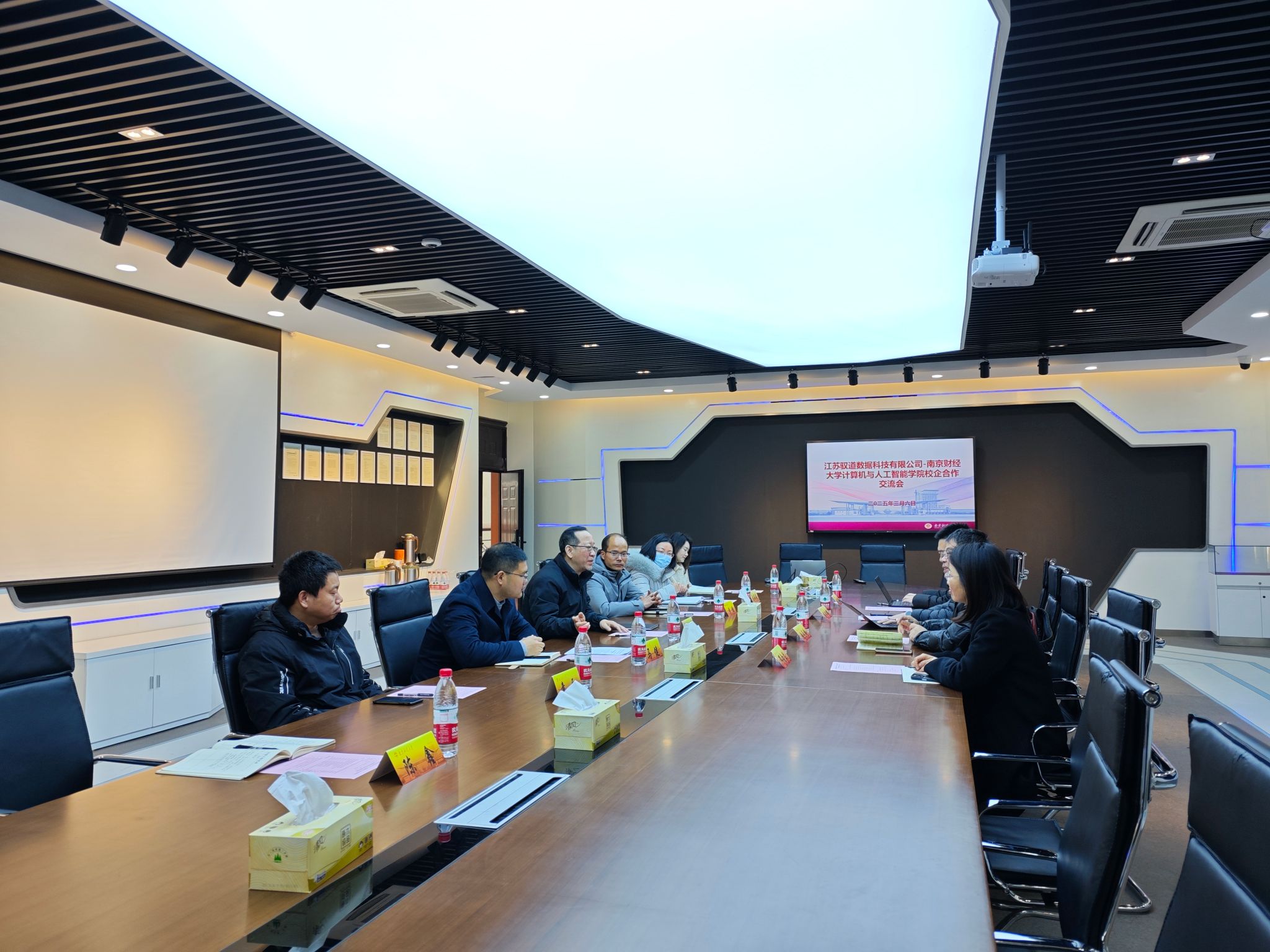 3月6日上午,江苏驭道数据科技有限公司一行在总经理蒋学辉的带领下,携手南京生态科技岛经济开发区管委会科技创新部副部长赵元岭,共同到访伟德源自英国始于1946,双方就校企合作项目进行了深入交流与探讨。伟德源自英国始于1946党委书记张阳军、院长黄健、党委副书记马健、实验室主任以及学工系统代表热情接待了来访嘉宾。