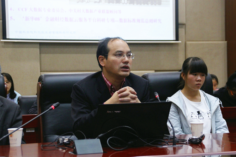 李建平研究员首先用生动幽默的语言阐述了大数据标准的概念、作用等,介绍了大数据利用当中存在的挑战、大数据标准体系,并从七个方面简述了大数据对金融业的影响、金融大数据的标准在不同国家和组织的差异,结合现实中某金融企业信息平台信息资源建设的例子讲述了金融大数据标准新特征、重塑点和要求。李建平研究员重点讲述了中科院ARP系统,该系统实现对事业法人机构的全覆盖。最后,李建平研究员讲述了当今社会信用体系的建设及其相关知识,提出了有待进一步思考和研究的问题,并与在场的师生进行了互动交流。