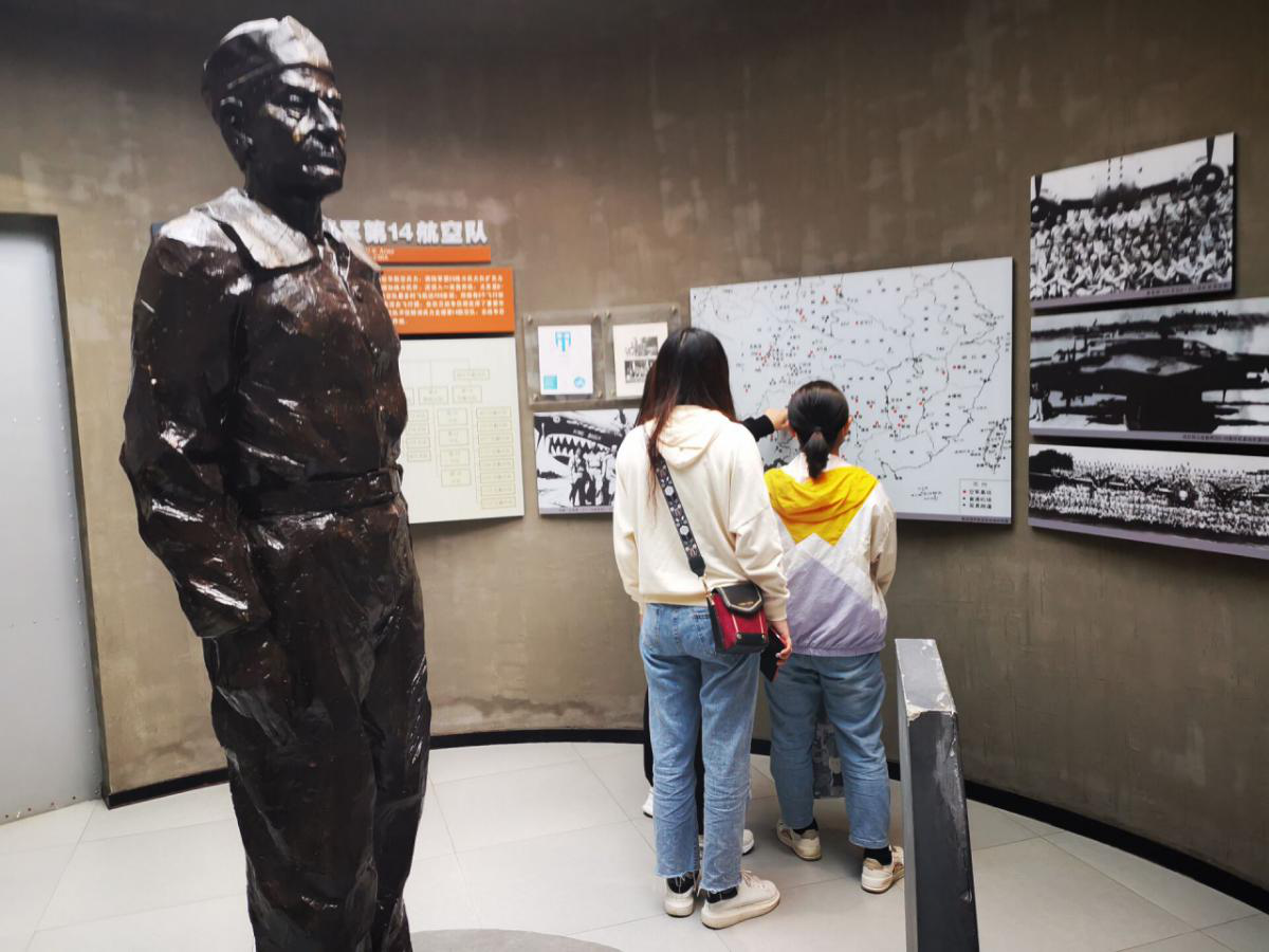 步入纪念馆,代表着中、苏、美三国联合抗战的“正义之神”雕像便映入眼帘。同学们有序地参观了1、2、3展厅。展厅里,氛围庄严而肃穆,同学们认真观看着每一位烈士的生平简介和英勇事迹,参观了抗战时烈士们作战时的战机、飞行服、手套、作战图等相关物品。每一样封尘的红色纪念物都体现了烈士们崇高的革命精神。