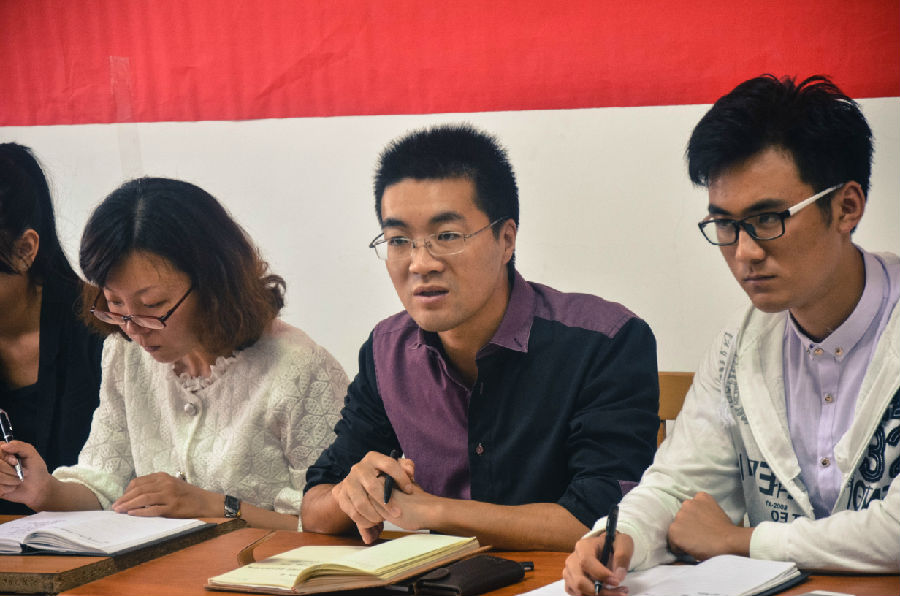 座谈会一开始,张媛媛老师总结了本学期迎新工作的开展情况,指出活动中的亮点与不足,突出创新与心意的重要性,更对10月份的运动会提出了希望与指点。张老师强调,明年的60周年校庆要提早做准备,做好、做足相应宣传工作。随后,院党委副书记潘雪峰老师对新一届院学生会的成立表示祝贺,从强调角色定位,明确工作和注重能力提升三方面详细阐述作为一名学生干部应具备的能力。潘书记的讲话让在座的学生会主席与部长获益匪浅。座谈会的最后,潘书记和张老师都对院学生会表达了美好的期望与祝福。