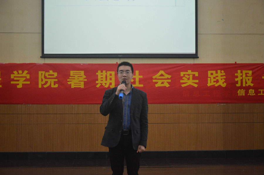 活动伊始,分团委副书记把冰倩同学向大家介绍了信息工程学院今年暑期社会实践的总体情况。接下来,分别有四支院级立项团队的代表与三位分散实践的个人上台发言,向同学们分享了自己在社会实践活动中的宝贵经历和感受。