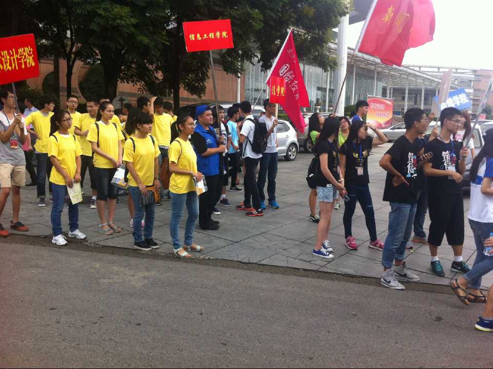 2015年9月5日早上6点半,天微微亮,在经过前期认真筹备与周密部署后,信息工程学院迎新工作顺利开展。在学院报到处、大学生活动中心、宿管站等地,我院志愿者身着统一的蓝色马夹,佩戴蓝色帽子,举着院系指示牌,指引新生报到,帮忙拎行李,回答新生和家长的各种咨询。