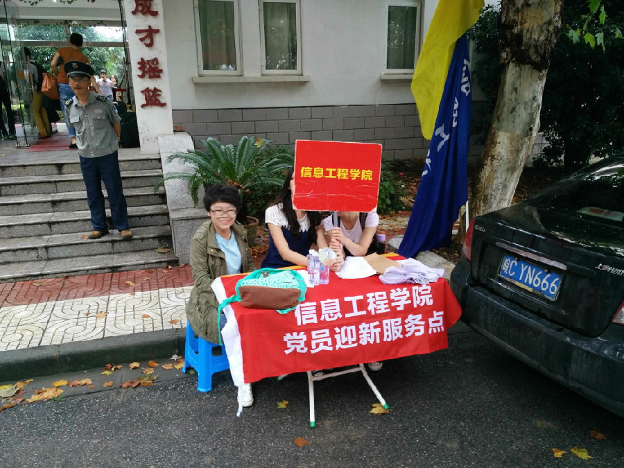 为帮助新生更快熟悉校园生活,我院2012级、2013级学生党员自发组成迎新服务小分队,在新生宿舍门口设立党员迎新咨询服务点,为新生和家长提供咨询,帮助他们尽快熟悉校园。