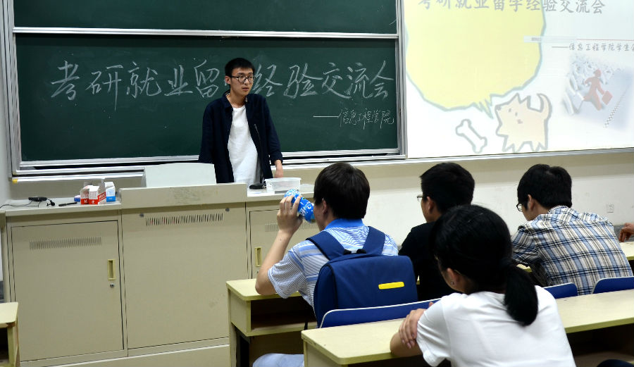 本次“考研就业留学”交流会请到了被澳大利亚莫纳什大学录取的成昱昊、被英国谢菲尔德大学录取的李妤、被中国科学院录取的周梦源、被浙江大学录取的孔澍欣以及分别取得阿里和百度offer的张祥保、朱杰等我院2011级在考研、就业、留学方面取得了较为优秀成果的同学来为我院同学分享他们的成功经验。