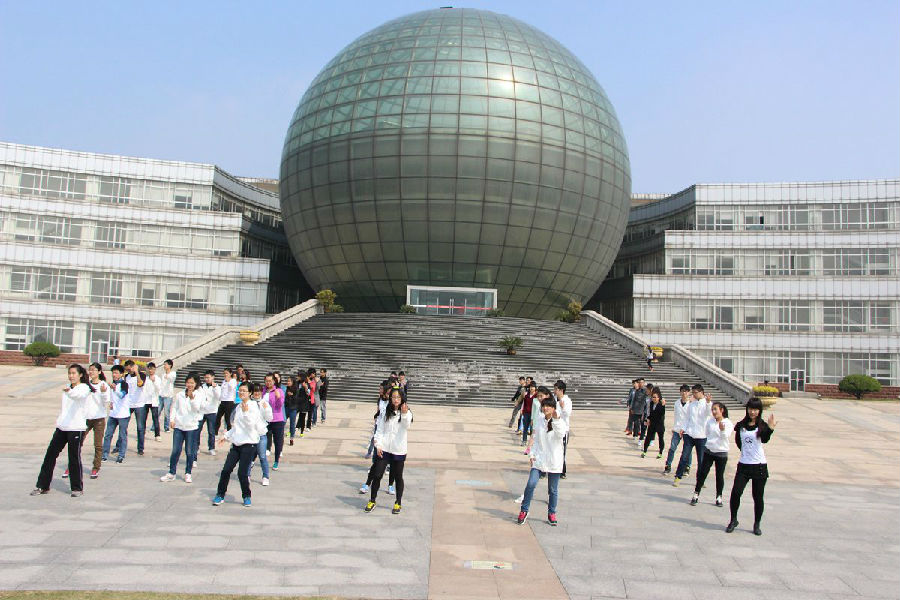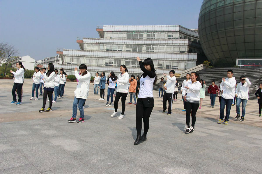 2015年4月14日上午10时,我院信管1301班和计算机1303班同学相约在我校图书馆前广场,开展主题团日活动,随《小苹果》的伴奏跳起了国标版“小苹果”健身操,欢快的节奏、动感的舞步与蓝天白云交相辉映,学子们动作优美,神采飞扬!
