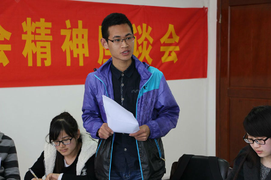 潘雪峰老师就分党校2015年工作要点进行部署,明确了我院党员发展计划,他指出,要贯彻落实我校“按需培训”与“分类培训”相结合、“课堂学习”与“课后自学”相结合、理论学习与工作研究相结合的要求,要以提升教育培训质量为根本,不断加强我院分党校师资队伍建设与教学水平,提高我院学生党校学习的质量。与会党员围绕分党校培训内容的拓展、培训方式的创新等进行了交流发言,学生党员计算机1201班于鹏代表广大学生提出了中肯的意见和建议。