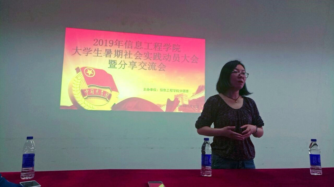 5月13日下午16:00,我校信息工程学院分团委在仙林校区德业楼Z4-406举办了2019年信息工程学院大学生暑期社会实践动员大会暨分享交流会。大一各班的学生干部参加了会议,我院分团委书记张媛媛老师,三位优秀团队代表和个人代表:邓华、陈晓晓、汪刘洋受邀出席本次会议。