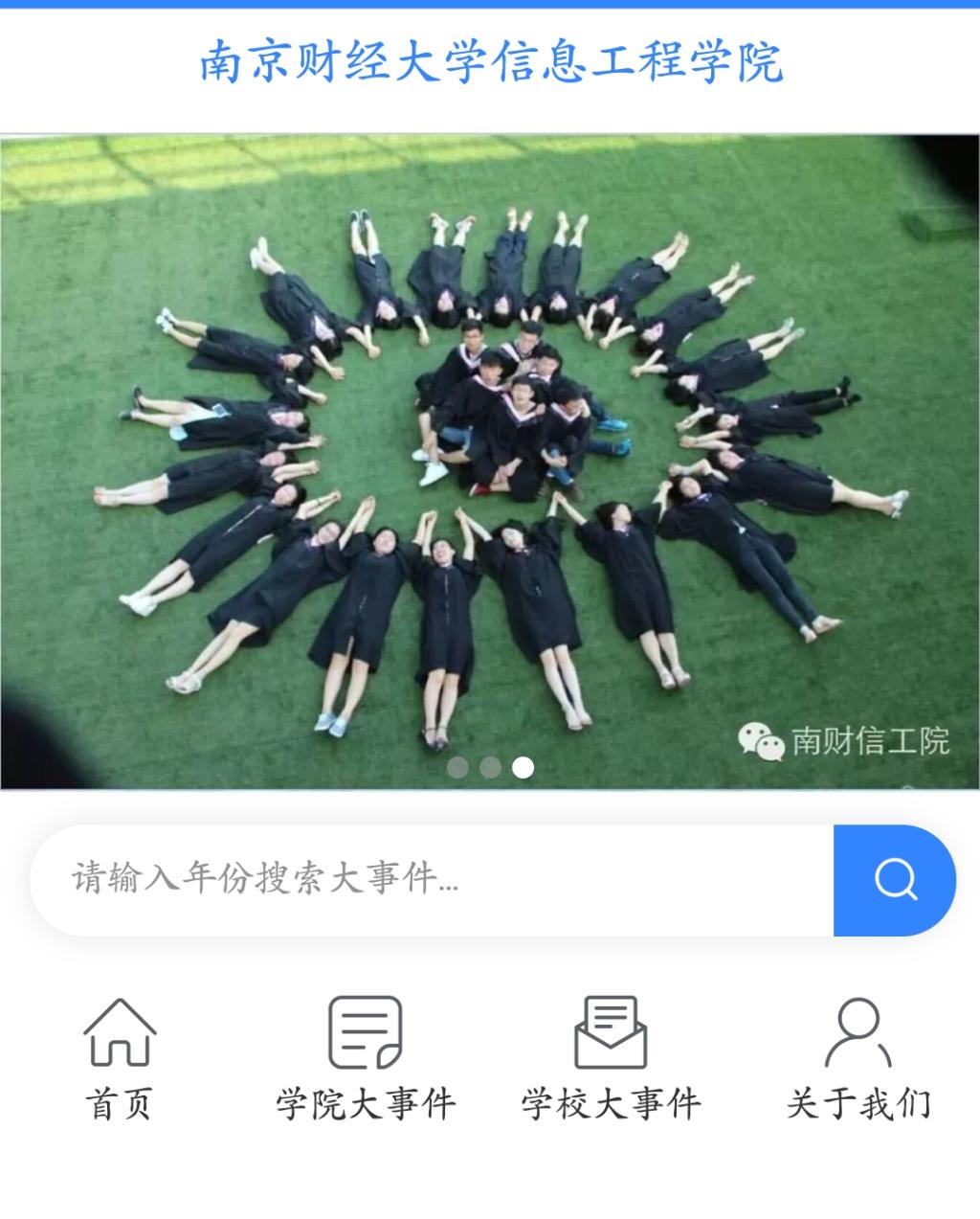 网页制作的基础工作是各类相关资料的收集和整理。学院学生会学生们通过学校官网、学院官网、微博官微、微信公众号、校友办等途径展开地毯式搜集。然后对学校、学院的精彩瞬间、重大事件、历年校庆等活动分类别梳理,网页还贴心地考虑到已毕业校友的怀校情怀,专门设置了历年毕业照专栏,已毕业的信工校友们可在此栏一睹自己学生时代风采和同窗的他/她。最后制成网页,网页包括“学校大事件”、“信工院大事件”、“学院校友毕业照”“关于我们”四个模块。