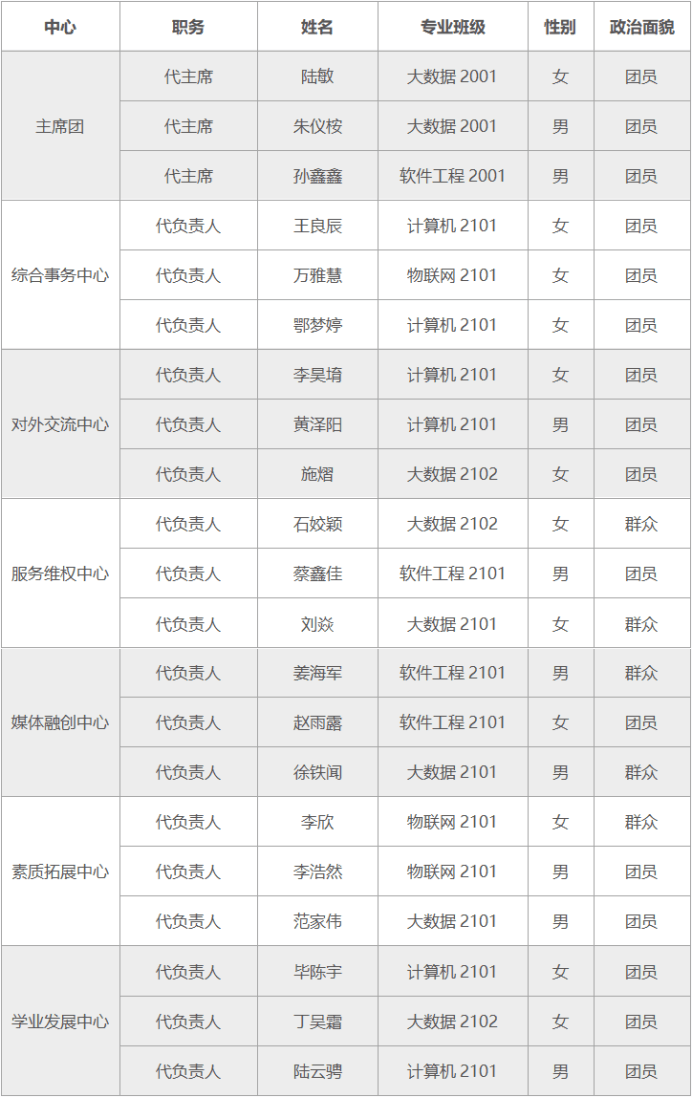 注:以上为代主席、代负责人名单,需要进入为期三个月的考察试用期。通过试用期考察的人员由代理职位转正为正式职位。