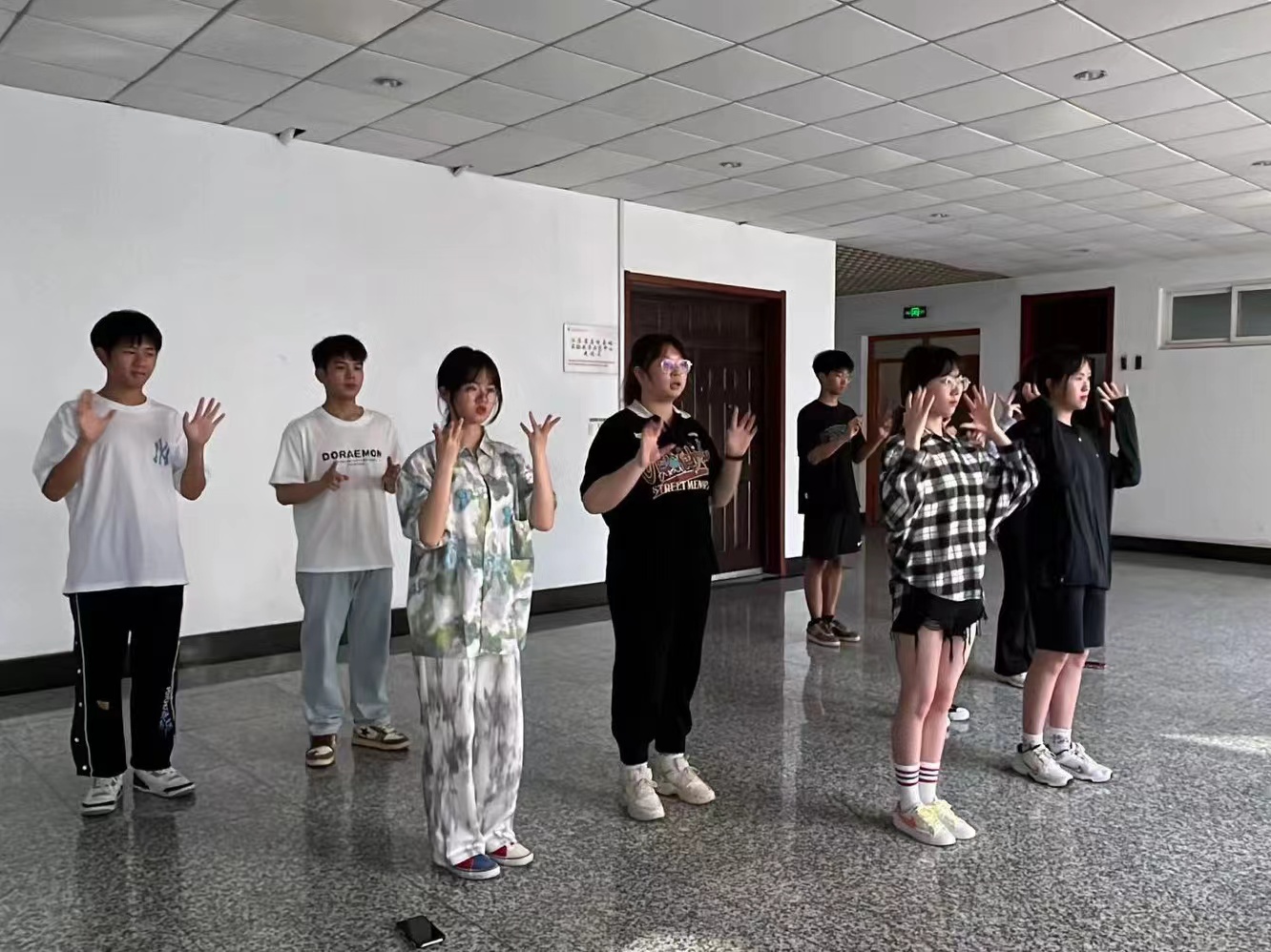 我院手语操参赛曲目为《仰望星空》,“星空,看似遥远,其实它离我们只不过是踮起脚尖的距离,就像我们的心,我们的梦,只要你努力踮起脚尖,就永远不曾遥远。”在成员选拔结束后,同学们多次进行排练——训练手部动作,学习表情管理以及熟练舞台队形等。期间,同学们按时到场、积极配合,取得良好的训练成果。