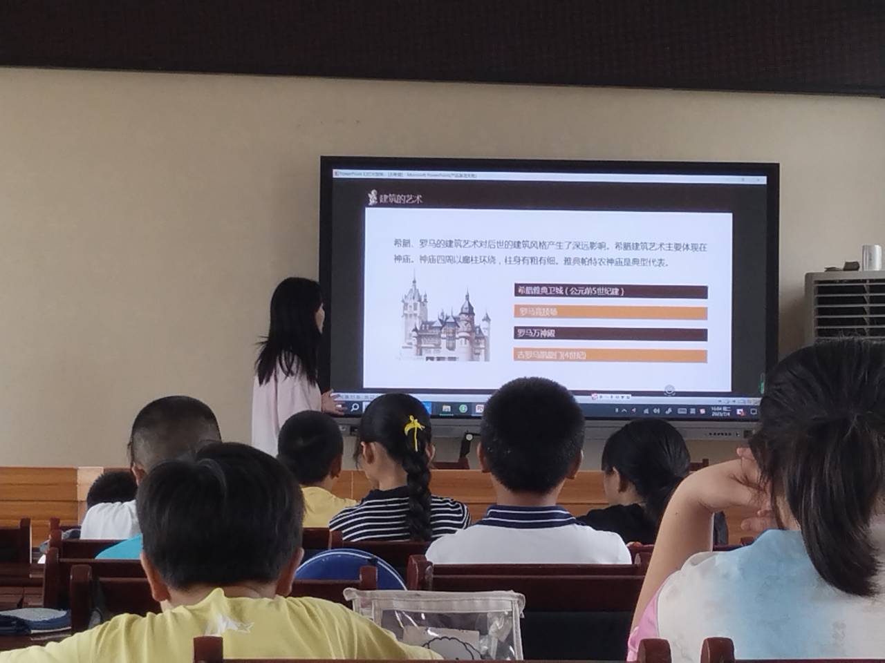 志愿者孙洁分别从文学作品、历史古迹、艺术雕塑、人文科学等为小朋友们讲述了古希腊罗马时期的古典文化。