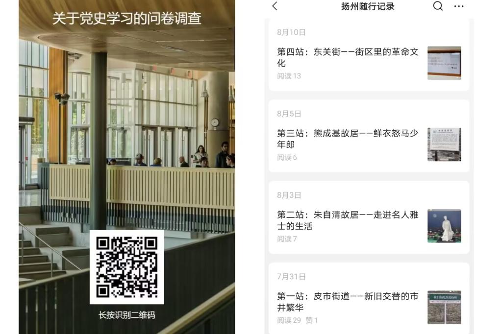 通过本次实践学习,小队成员感受到先辈们拼尽全力只为家国的赤忱丹心,进一步了解党带领人民从深重苦难走到富强繁荣的历史。习近平总书记在党的二十大中指出:伟大成就的实现没有教科书,也没有现成答案。学习历史、体悟精神最后都要归结到身体力行的实践上去,因此,实践小队制作网络问卷了解了人们对党史的了解情况,创建团队公众号记录扬州之行每一天学习情况,呼吁人民群众积极主动探访红色教育基地,学习红色文化,誓将红色革命进行到底。