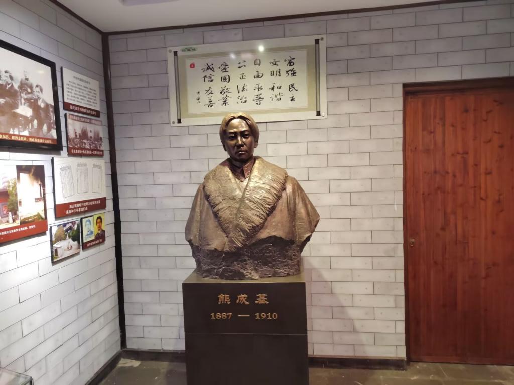 实践小队选取几处具有代表性的红色基地,依靠实地参观,深入学习百年党史的发展历程,继承先辈遗志,让青春同党和人民事业高度契合。在熊成基故居,通过橱窗展出的实物及墙壁上的图文展板,小队成员认识到这位年少壮志为国、刑场做讲台的革命先驱的英勇不屈。