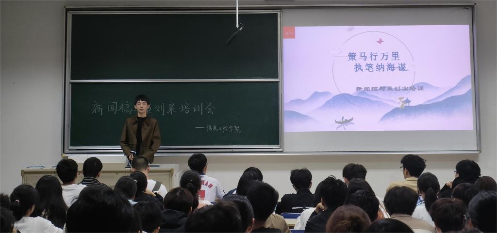 为培养新一届学生干事的活动新闻稿以及策划案撰写能力,不断提升综合技能,发挥个人主观能动性,10月13日,信息工程学院在德业楼111举办了以“策马行万里,执笔纳海谋”为主题的新闻稿与策划案培训会。信息工程学院辅导员兼团委书记陈鑫出席会议,信息工程学院团委、学生会干事等参会。