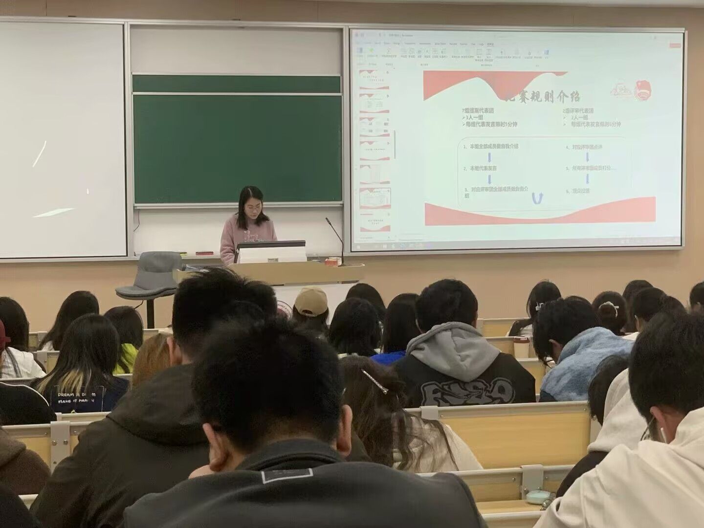 比赛采用分组模式,共有七支提案组与三支评审组出席。各提案组以三人小组形式,围绕社会议题开展深入调研并形成创新提案,通过5分钟PPT展示阐述方案。评审组则从创新性、可行性、现场表现等维度对提案进行专业点评与打分。此外,现场设置观众投票环节,最终得分由评审评分(占70%)与观众投票(占30%)综合评定。