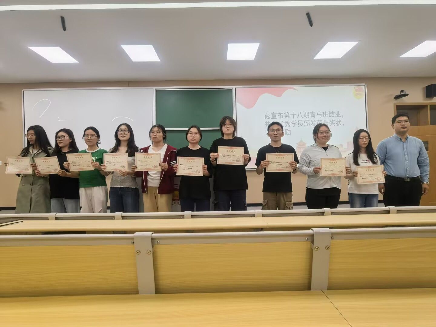 在充满热烈氛围的颁奖环节后,主持人宣布了第十九期青马班的正式开班。新一届学员们将继承和发扬青马班的优良传统,继续探索思想政治教育的深度与广度。