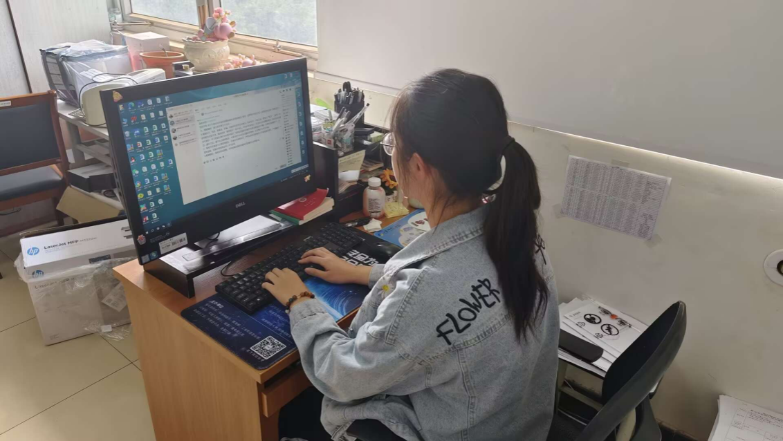 首先是邓晨钰同学做起了“一日辅导员”,本以为就是接接电话、办办请假,没想到:回复各种消息、撰写和修改新闻稿、筹办活动、考研政审材料办理、考研相关问题咨询、跨部门沟通对接、临时会议等等,坐在办公桌前,键盘敲个不停、电话时常响起、同学进出不断,一天的体验忙碌而繁杂。
