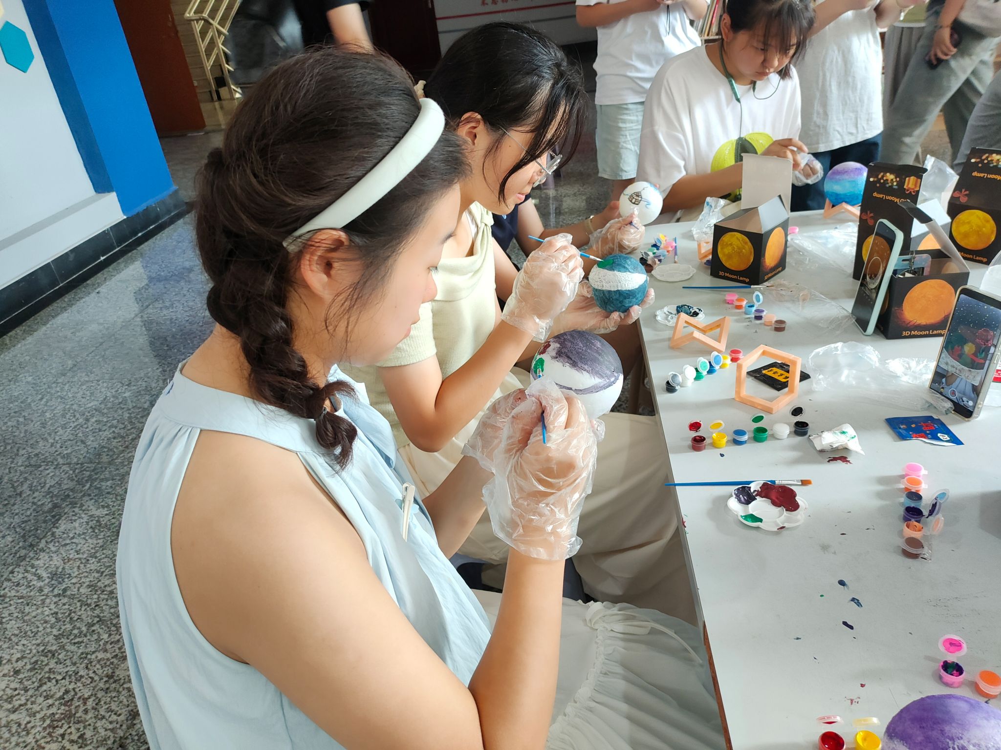 同学们制作创意月球灯现场