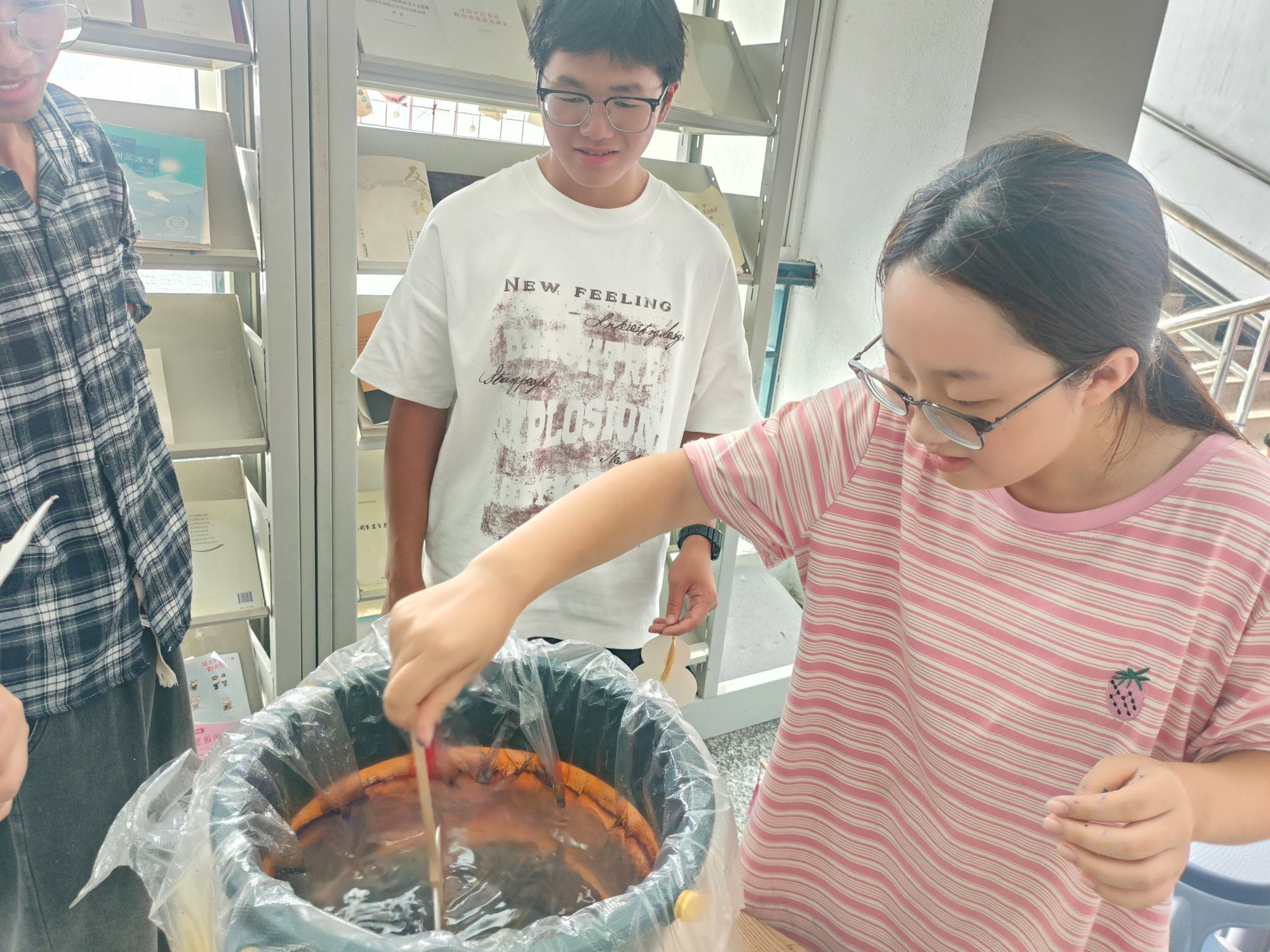 同学们制作漆扇现场