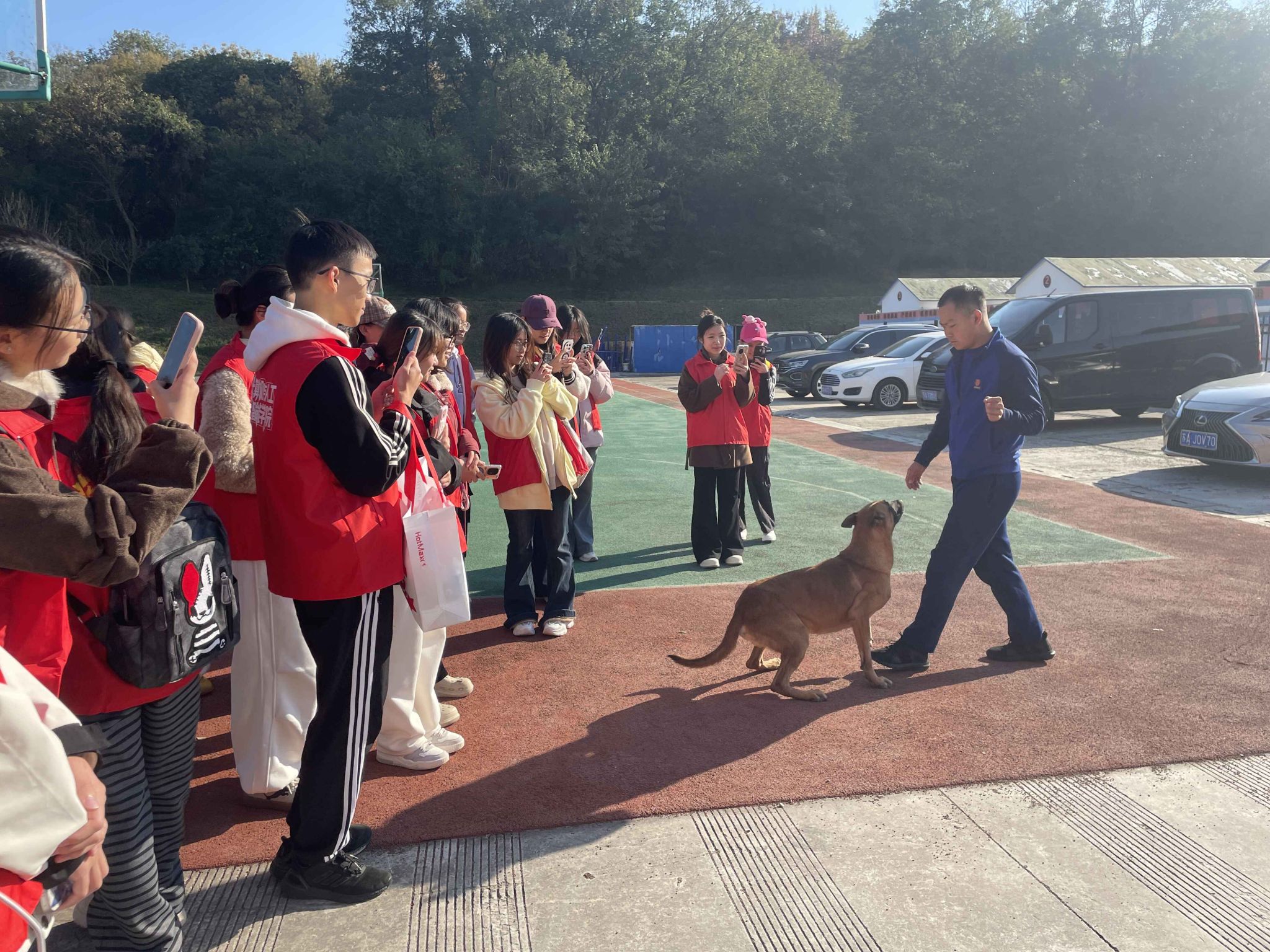 同学们观看搜救犬展示