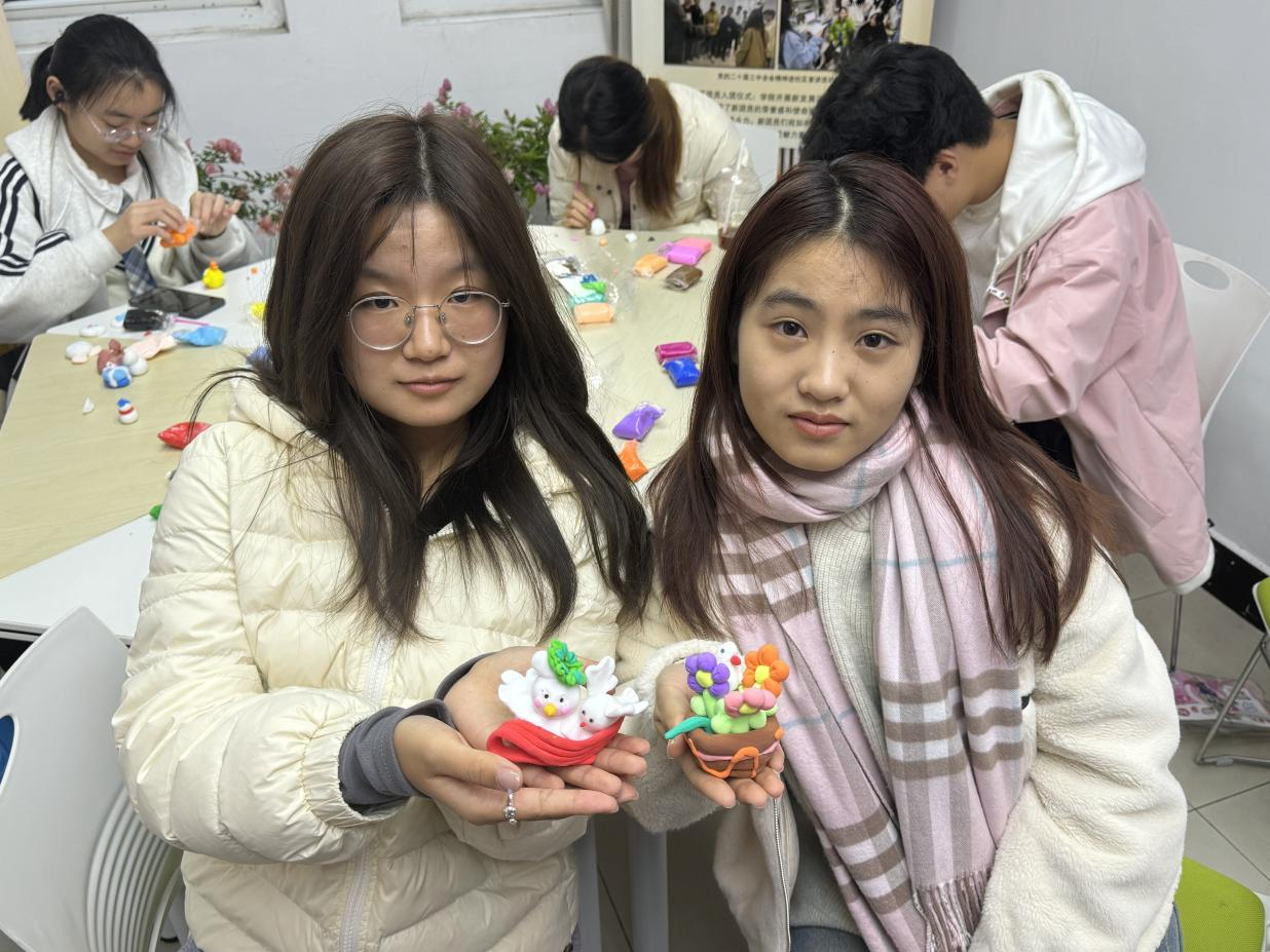 活动伊始,同学们以手工创作寄托哀思与祈愿。大家用黏土、彩纸等材料,精心制作出象征和平的白鸽与灯饰。作品静静陈列,伴随集体默哀,无声传递着对逝者的缅怀与对和平的坚守。