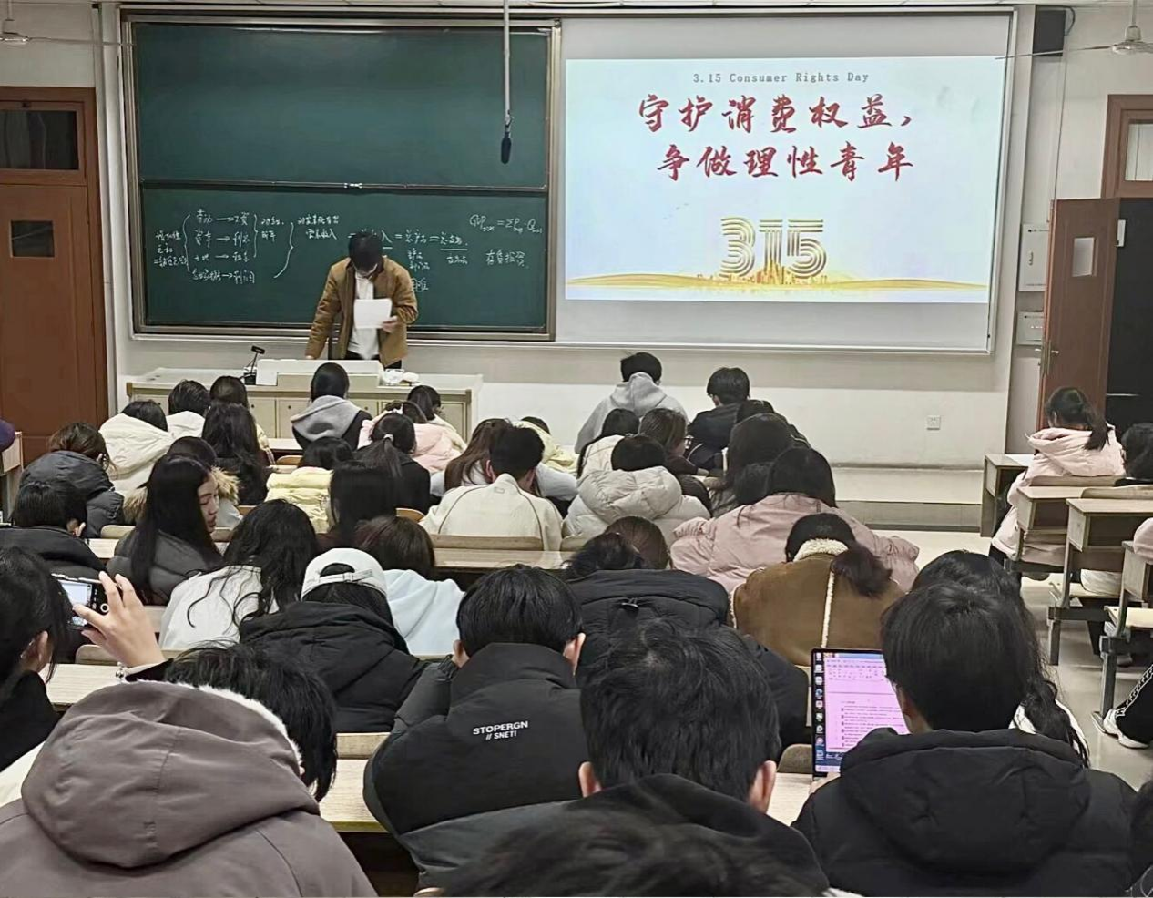 团课最后,主讲人向全体青年学子发出青春倡议,号召大家争做消费维权宣传员、理性消费践行者,共同构建诚信消费环境。倡议同学们树立正确消费观,摒弃超前消费、盲目跟风消费等陋习,立足实际需求,按需购买,警惕“网红爆款”“低价引流”等消费套路。同时,鼓励同学们带动家人朋友共同抵制消费乱象,发现不良商家和消费陷阱及时举报,用实际行动推动营造公平、透明、安全的消费环境。
