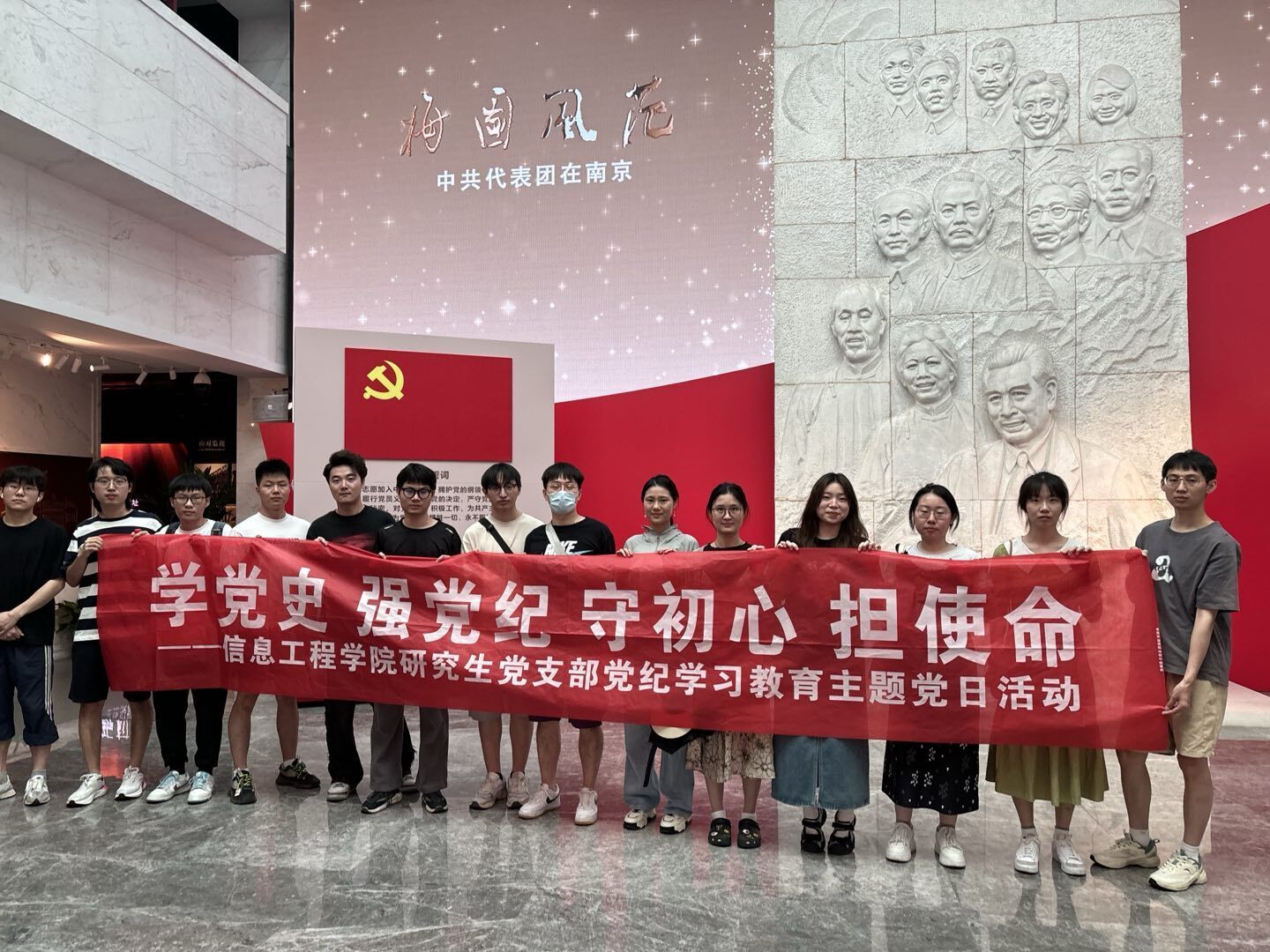 为了增强历史自觉,加强党纪学习,赓续红色基因, 5月18日,信息工程学院研究生党支部组织党员、发展对象和入党积极分子前往南京市梅园新村纪念馆开展了以“学党史,强党纪,守初心,担使命”为主题的实践学习活动,接受党史教育和廉洁教育。