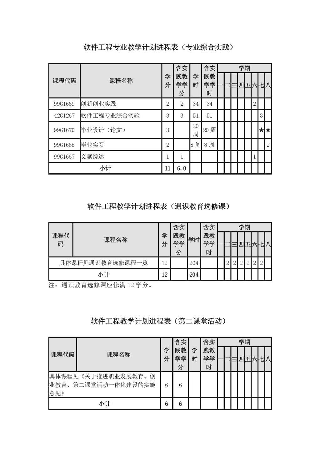 (一)公民素质与职业道德培养要求:1. 学习和掌握马列主义、毛泽东思想、邓小平理论、“三个代表”重要思想、科学发展观、习近平新时代中国特色社会主义思想等重要思想的精髓,指导自己的学习、实践和行动;2. 自觉维护国家和人民的利益,为新时代中国特色社会主义现代化建设服务;3. 具有锐意进取、善于合作、百折不挠的意识、意志、毅力和精神;4. 模范遵守社会公德、法律、法规和职业道德。5.尊重事实,敢于负责。(二)知识与能力培养要求:1. 具备一定的人文科学、社会科学和自然科学的知识和素养;2. 掌握扎实的软件工程基础知识、基本概念、基本理论;3. 具有较强的计算机软件分析、设计和开发能力;4. 具有较好软件项目管理、团队协作能力;5.熟悉数据挖掘、人工智能、复杂网络和电子商务方面的基本知识;6.熟练掌握一门外国语,具有本专业领域较强的外语综合应用能力;7.具有良好的沟通能力和语言表达能力。(三)身体与心理素质培养要求:1. 掌握一定的体育基础知识;2. 掌握科学锻炼身体的基本技能;3. 具有良好的体育锻炼和卫生习惯,身体健康;4. 掌握一定的心理学基础知识、技能和方法;5. 尊重生命,关爱他人;6. 理性、严谨,乐观、开朗。
