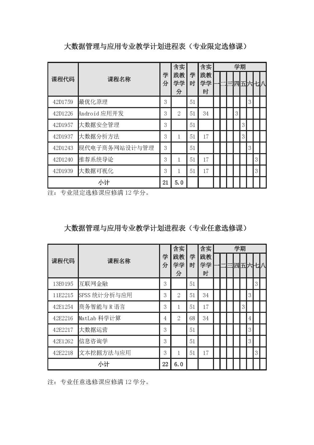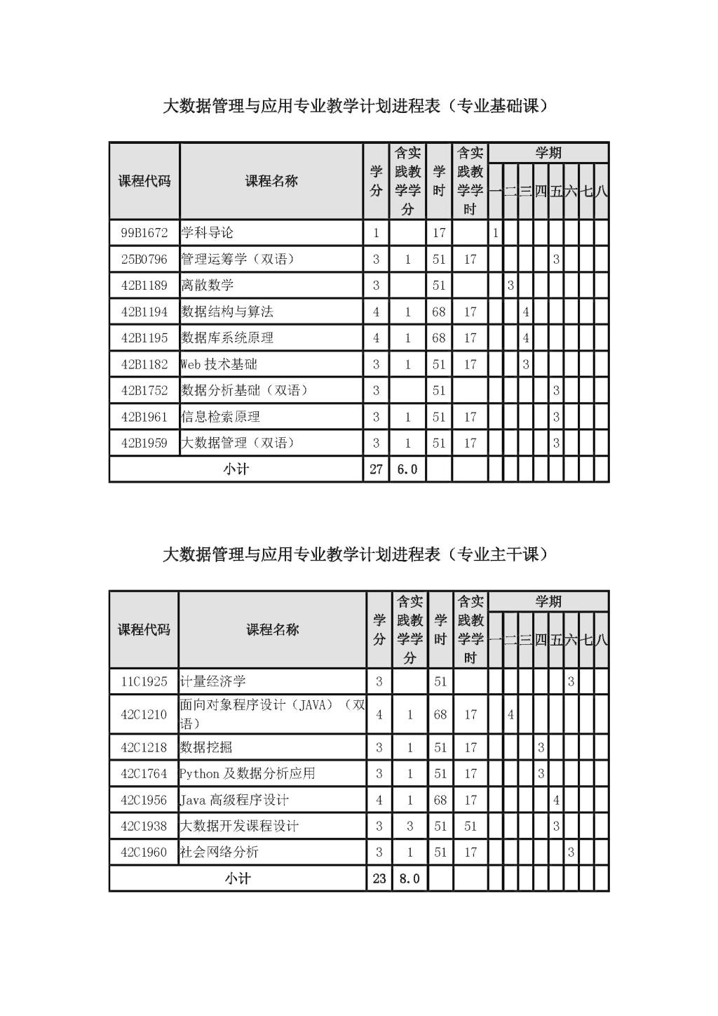 大数据管理与应用专业培养方案