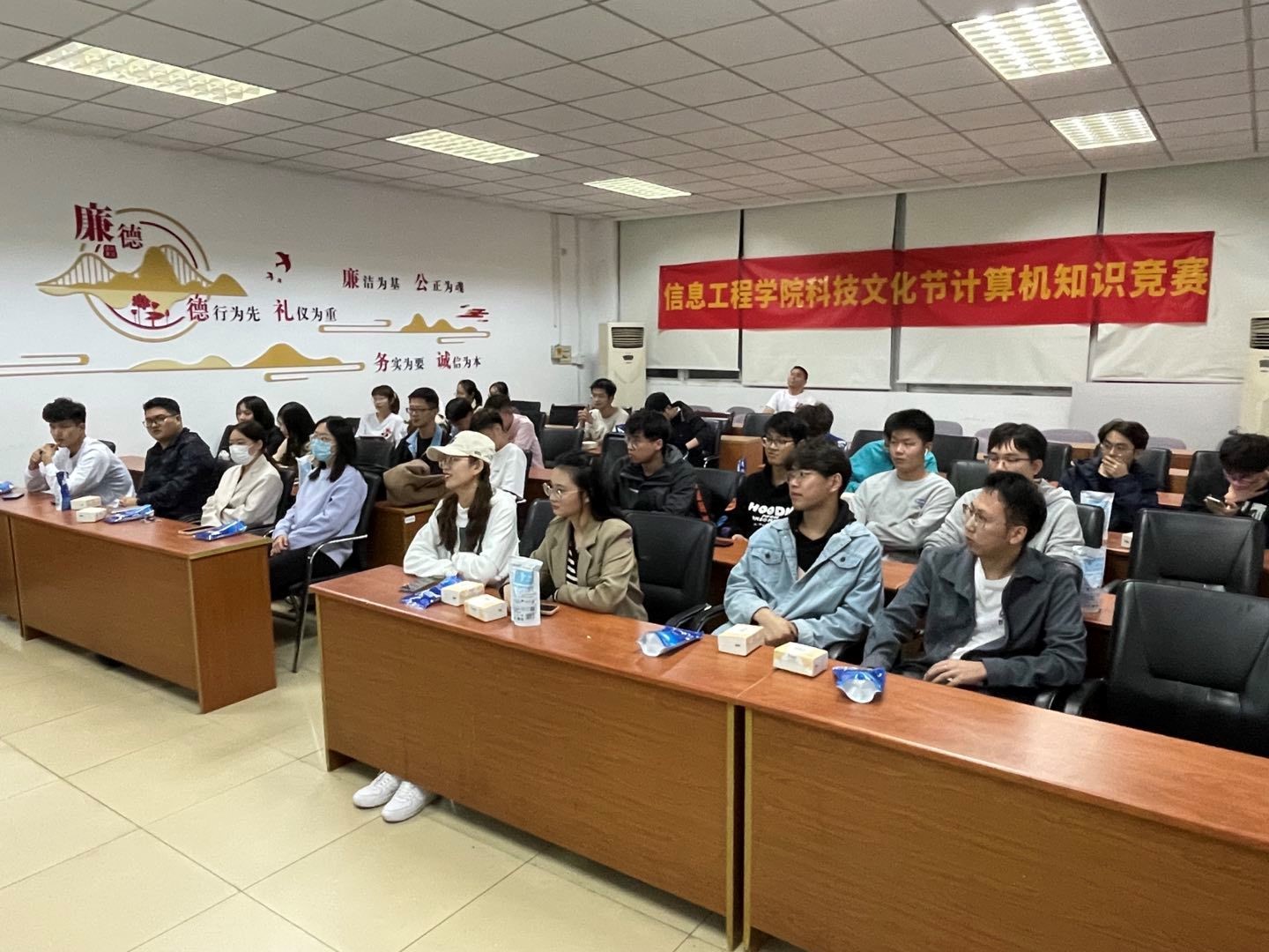 为了加强同学们的团队凝聚力,更好地营造“比、学、赶、帮”的学习氛围,夯实同学们的专业基础,丰富同学们的学习生活。1016日晚上6点,信息工程学院研究生党支部在德业楼406会议室举办科技文化节计算机知识竞赛。信息工程学院各年级研究生、会计学院、营销学院、金融学院以及法学院研究生代表共30余人参加了本次活动。