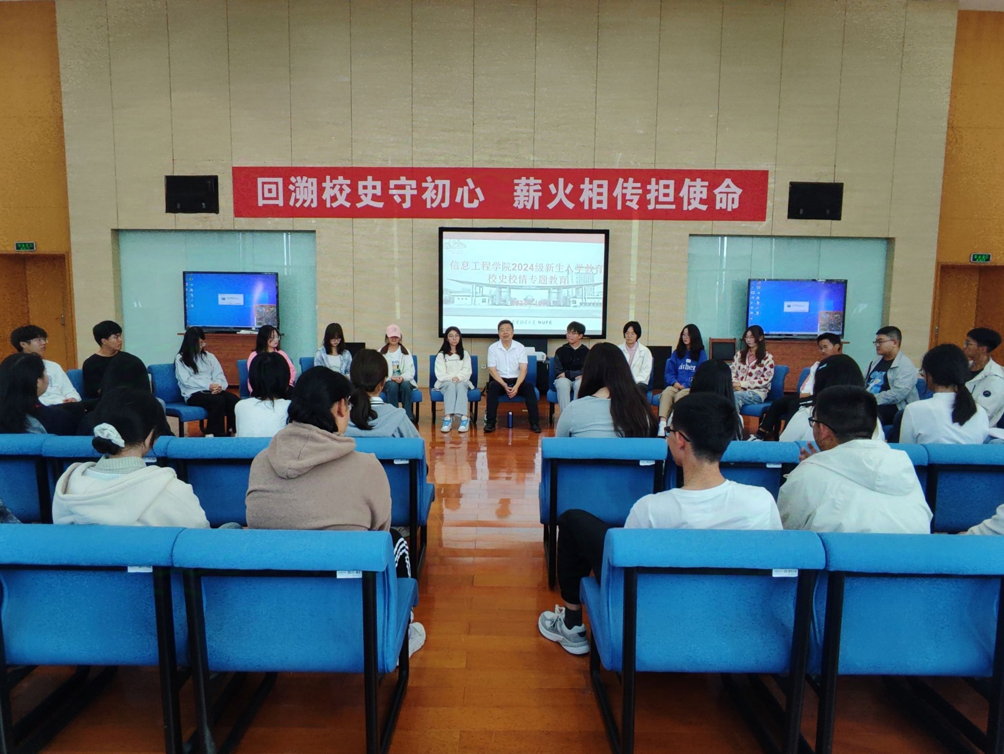 为加强学生的爱校荣校教育,在68周年校庆之际,信息工程学院在图书馆“世界之窗”组织开展了“回溯校史守初心·薪火相传担使命”主题校史校情专题教育,学校“五老讲师团”成员、82级校友、校工会原主席冯玉川老师应邀为学院新生讲述了自己与南财相识相知相交的故事。院党委副书记马健、分团委书记郭秀芳、新生辅导员杨佳宁以及24级新生参加活动。