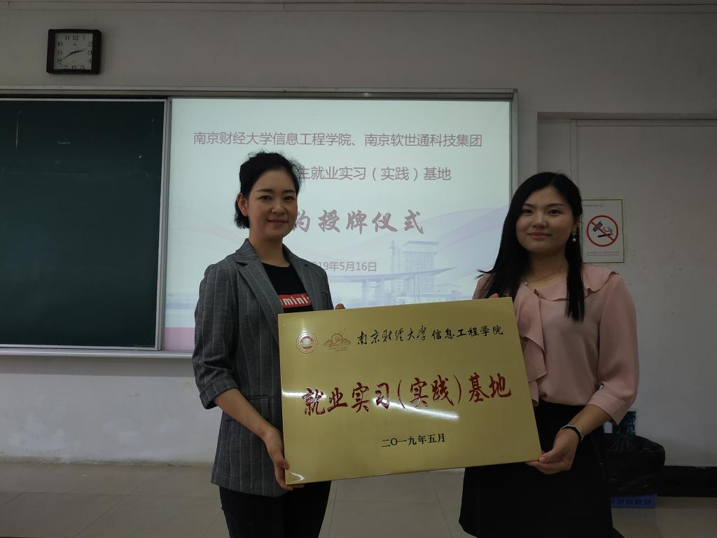 5月16日下午两点半,信息工程学院在我校仙林校区博文楼(教A)201室举办了“信息工程学院与南京软世通科技集团共建大学生实习实践基地签约授牌仪式暨招聘宣讲会”,参加此次签约授牌仪式的领导嘉宾有:信息工程学院党委副书记吴丹,南京软世通科技集团人力资源部负责人李珊珊,南京软世通科技集团入事经理顾爱兰,信息工程学院学工办主任张媛媛,2019届毕业班辅导员张婷,2016级辅导员孙脉以及2019届毕业生代表及其他在校生代表。仪式由张媛媛老师主持,